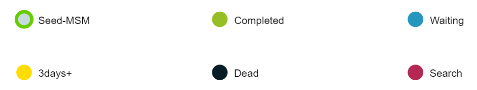 * Số giữa các đường nối = khoảng cách số ngày từ khi người giới thiệu hoàn thành phỏng vấn đến khi người được giới thiệu hoàn thành phỏng vấn (hoặc đến hiện tại nếu người được giới thiệu chưa tham gia phỏng vấn).